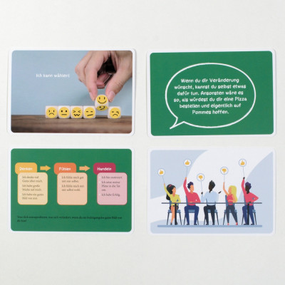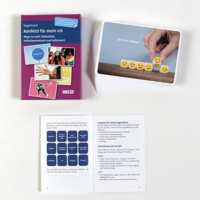Selbstwert, Selbstbewusstsein und Selbstliebe sind zentrale Themen in der therapeutischen und sozialpädagogischen Arbeit mit Jugendlichen. Mit diesem Kartenset wird ein direkt einsetzbares Instrument angeboten, um an den genannten Themenbereichen mit den jungen Klient:innen zu arbeiten. Jede der 60 Karten beinhaltet eine kurze Übung. Dabei werden unterschiedliche Stilmittel eingesetzt, u.a.:- Zitate, Geschichten, Metaphern- Hilfreiche Sätze, zu ergänzende Satzanfänge, Affirmationen- »Mein ...-Ich« (über verschiedene Formen des Selbst, Rollen etc. reflektieren)Die Übungen eignen sich besonders als Eisbrecher am Anfang einer Sitzung, stärkendes Element am Ende oder auch als kurze Aufgaben für zwischendurch. Sie bieten Raum für eigene Gedanken, hinterfragen festgefahrene Einstellungen über sich selbst und können auf einfache Art und Weise einen starken Eindruck hinterlassen.