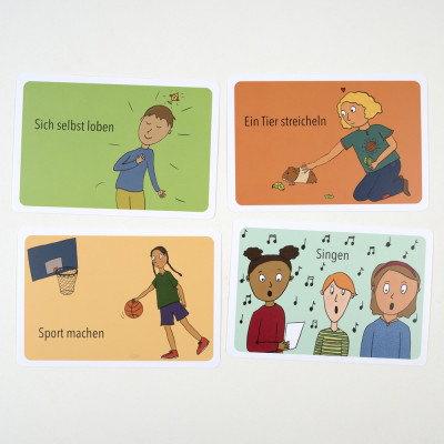 Baden, lachen, Schönes machen • Kartenset zur Selbstfürsorge für Kinder • 60 kindgerechte Ideen, visuell ansprechend • Vielseitige und diverse Motive Alles, was uns körperlich und seelisch guttut, nennen wir Selbstfürsorge – das ist auch für Kinder wichtig! Dabei achten Kinder auf ihre Bedürfnisse und Grenzen und gehen liebevoll mit sich selbst um. Selbstfürsorge stärkt die psychische Gesundheit und ist wichtig in der Therapie psychischer Störungen. Die 60 Bildmotive bieten Ideen, wie selbstfürsorgliches Verhalten gelingen kann, und regen Kinder zum Nachdenken und Diskutieren darüber an, was ihnen guttut (und was weniger). Die Bildkarten sind in der therapeutischen Praxis, in der Beratung, im Einzel- sowie im Gruppenkontext, aber auch therapieunabhängig vielseitig einsetzbar. Für Kinder von 6-13 Jahren.