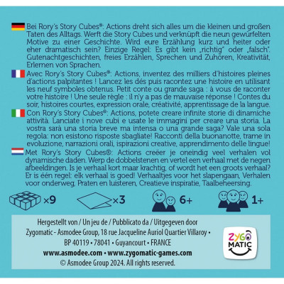 Geschichten erzählen, die dynanmisch, interaktiv, lustig und zufällig ausgedacht sind. Ein Spiel für Groß und Klein. Rory Story Cubes Action